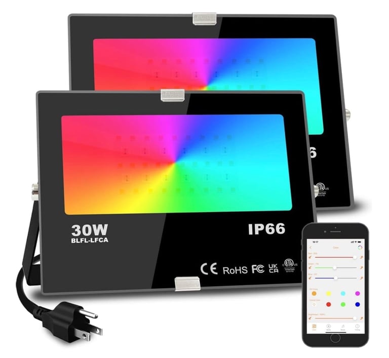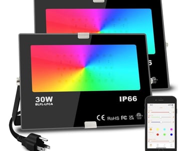 Led Flood Light 30W, 300W Equivalent 3000 LM Outdoor Color Changing Led Stage Landscape Lights, Bluetooth RGBW Smart Floodlights 2700K & 16 Million Colors&Timing& Music Sync, IP66,US 3-Plug (2 Pack) - $31.99 (originally $49.99)