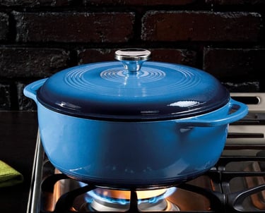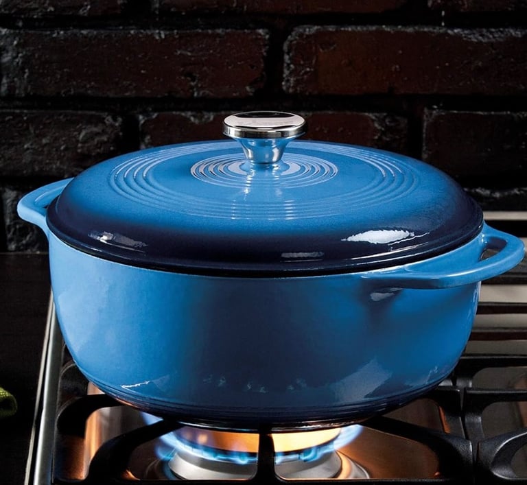 Lodge 6 Quart Enameled Cast Iron Dutch Oven with Lid – Dual Handles – Oven Safe up to 500° F or on Stovetop - Use to Marinate, Cook, Bake, Refrigerate and Serve – Blue - $77.99 (originally $99.90) <<-- Available in a variety of colors!!!