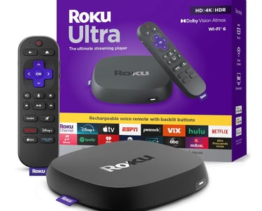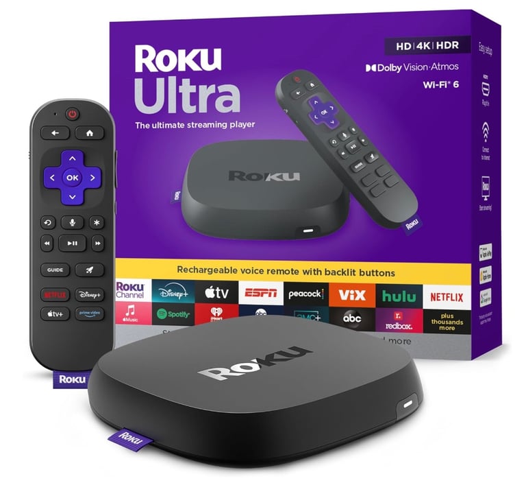 Roku Ultra - Ultimate Streaming Player - 4K Streaming Device for TV with HDR10+, Dolby Vision & Atmos - Bluetooth & Wi-Fi 6- Rechargeable Voice Remote Pro with Backlit Buttons - Free & Live TV - $69.00 (originally $99.99)