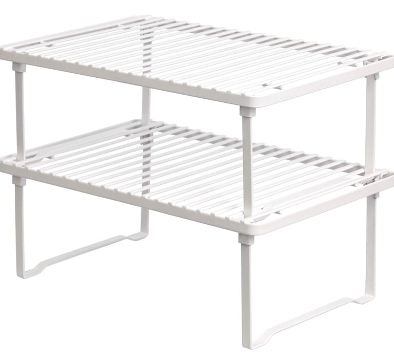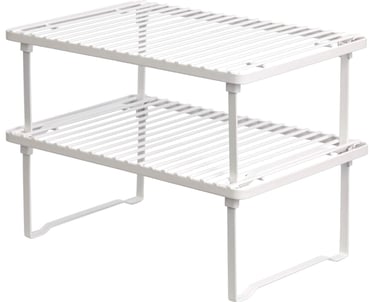 Amazon Basics Stackable Metal Kitchen Storage Shelves for Dishes, 12.5" L x 8" D x 4.5" H, Set of 2, White- $14.56 (originally $25.49)